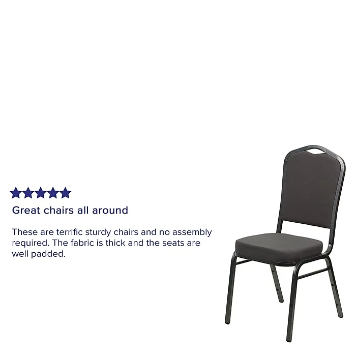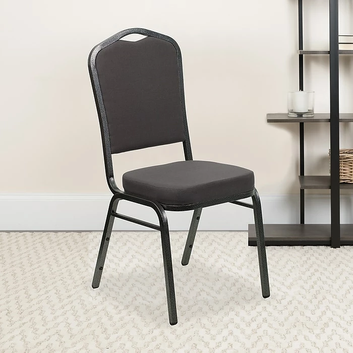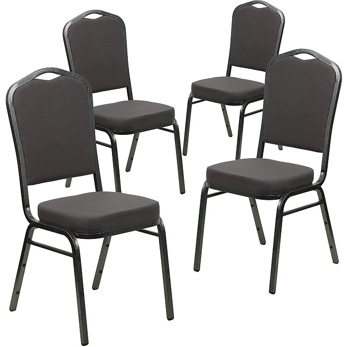 Flash Furniture HERCULESâ„¢ Multi-purpose stacking banquet chair has a gray 2.5″ thick fabric seat and features crown back design for comfortable seating. 500 lbs capacity chair is made from a tough 16 gauge frame and sold as 4 per pack.
