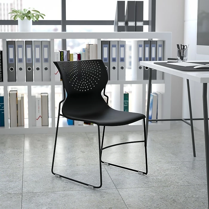If you’re looking for modern yet flexible seating for the front office of your business this sled base stack chair will outshine. This chair is highlighted by a deep curved back for lumbar support in a perforated design. Stack chairs are a popular choice in many industries, including the home for their compact and portable design. Furnish any high traffic space with this plastic guest chair, the plastic surfaces are easy to maintain in busy lobbies and cafeterias. The heavy-duty plastic stack chair is sturdy in construction to withstand frequent stacking. After use in temporary settings such as multi-use meeting spaces or school functions this chair stacks up to 25 chairs high. To make transporting even easier, equip yourself with our compatible sled base stack chair dolly. When in need of a space-saving seating solution that is permanent or temporary, allow this stackable side chair to work for you.