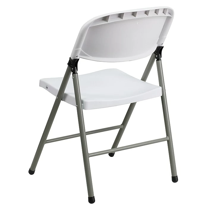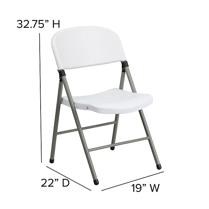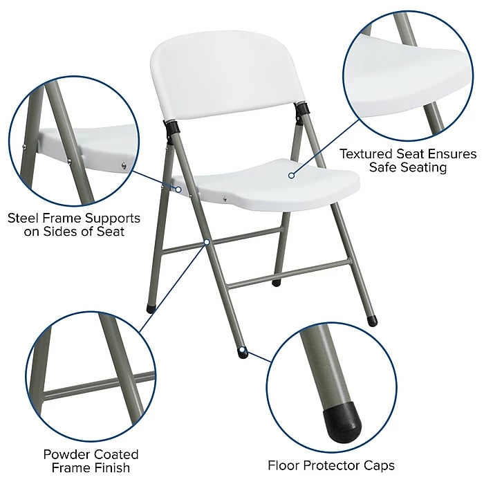 Feel free to host the holidays this year or plan a perfect event or gathering with this Flash Furniture HERCULES Series granite white plastic folding chair with gray frame. A practical choice for party rental companies, event venues, or for regular use in your home, this folding chair with steel frames is built to last. A molded seat provides comfort to guests while the heavy-duty frame supports up to 330 lbs. The textured seat ensures safe and comfortable seating. After use, place the chairs from the two-pack on top of each other or in a row. You’ll always have extra seating on hand for guests for a game night, party, and Thanksgiving or Christmas dinner. The plastic chair offers a versatile seating solution while being easy to maintain and is designed for portability.