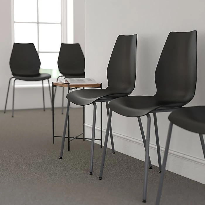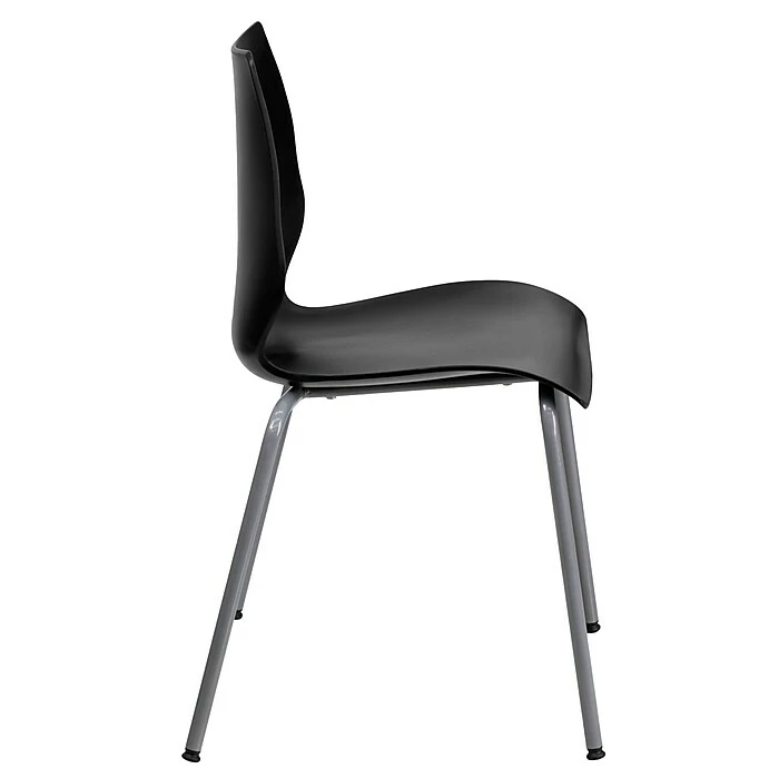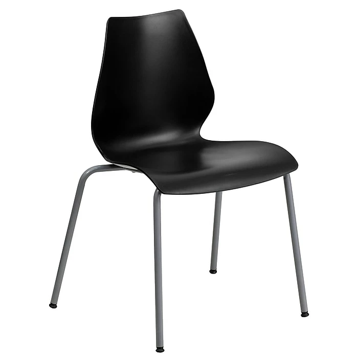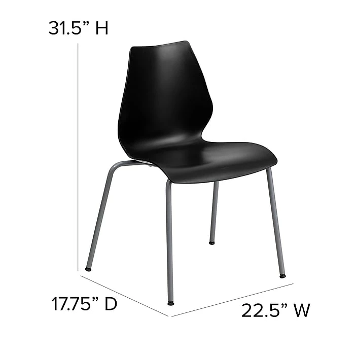 Flash Furniture Hercules series stackable chair in black color offers retro modern design and features silver powder coated finish. 12320 oz Chair delivers durable polypropylene seat with non-marring plastic floor glide.
