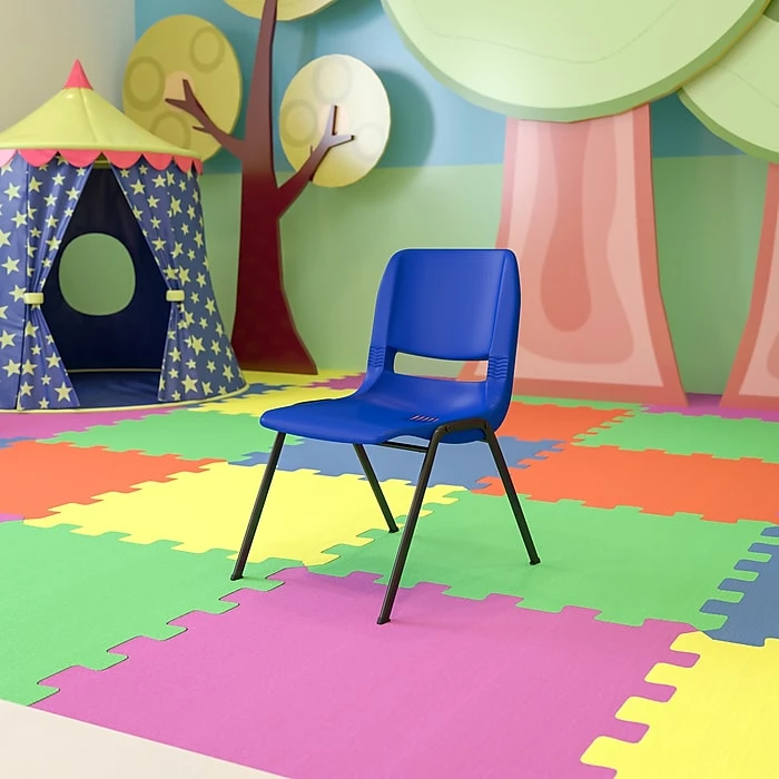 Flash Furniture Hercules Ergonomic shell stack chair in navy color measures 24 1/2″ x 15 1/4″ x 19 1/4″ and has an elegant black frame. Armless chair for kindergarten – 2 has plastic floor glides for mobility.