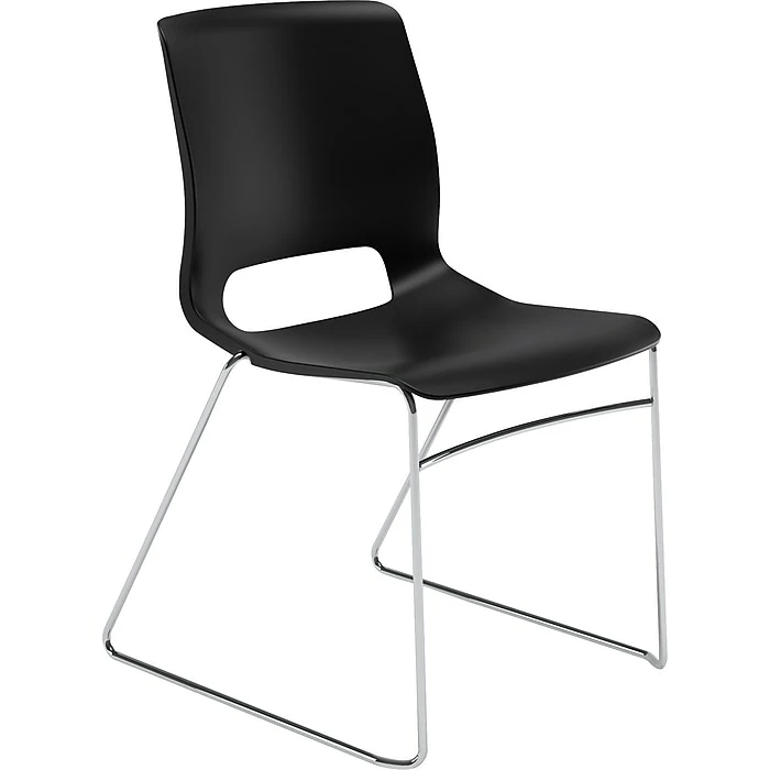 Hon Motivate High density plastic stacking chair features classy onyx shell to provide unique comfort to your body. Chair with 300 lbs of capacity can be stacked up to 12 high on the floor or 40 high on cart to save maximum space.