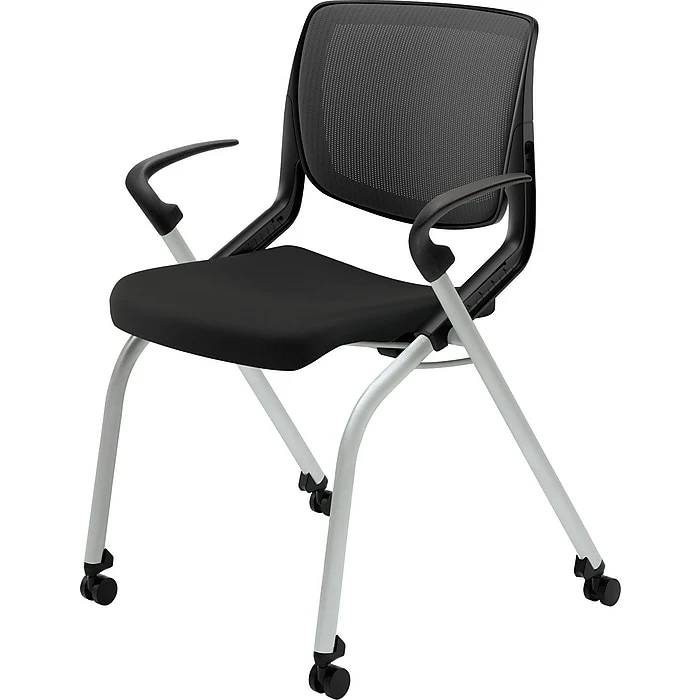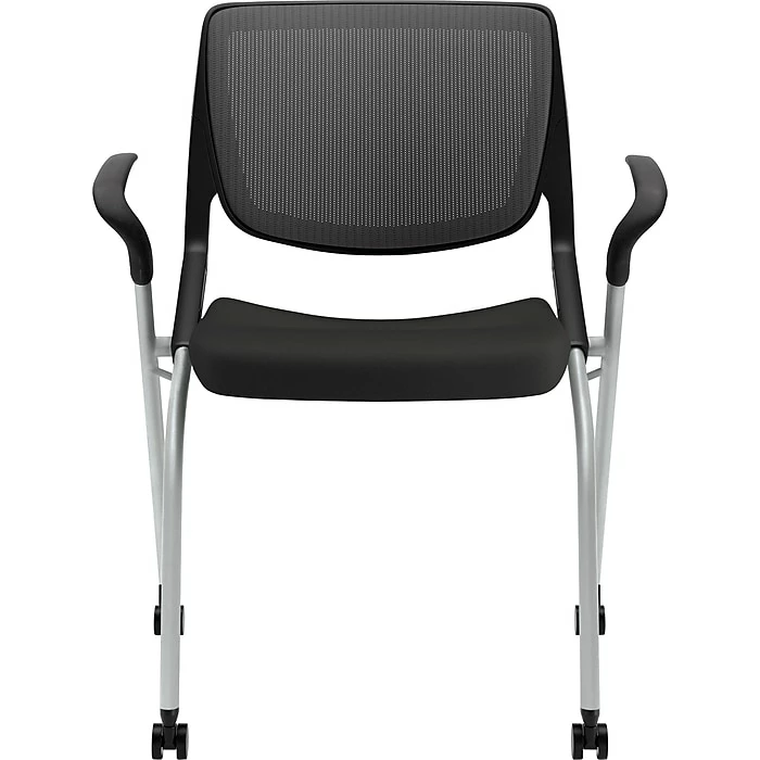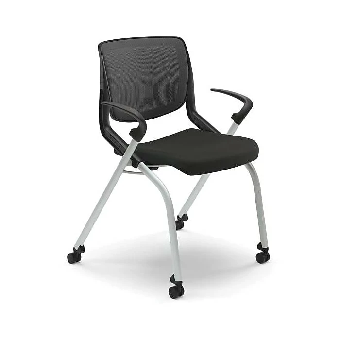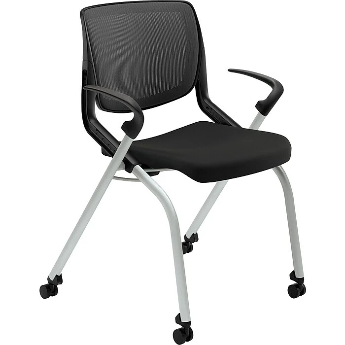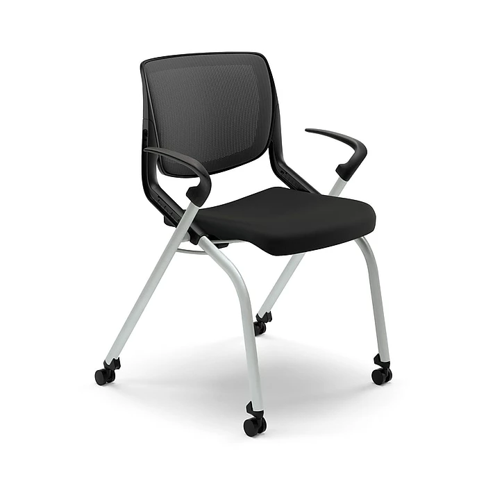HON Motivate Nesting Stacking Chair, Black ilira Stretch Back, Fixed Arms, Onyx Shell, Black Fabric (HONMN212ONCU10)