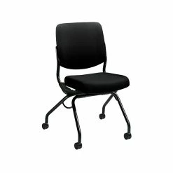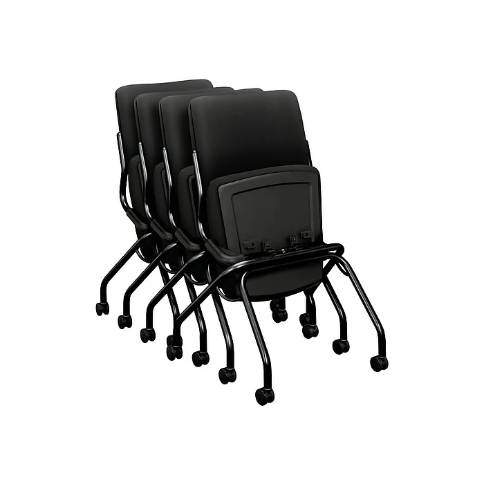 Move seating where you need it with this mobile nesting chair. The upholstered seat and reclining backrest provide cushioning and promote comfort for all-day meetings, and the streamlined, armless design allows a better fit in limited-space areas. The sleek, high-tech appearance of this HON upholstered-back nesting chair pairs beautifully with most modern office space.