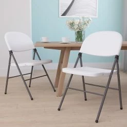 - White stain-resistant blow-molded resin plastic seat supported by a 18 gauge steel frame