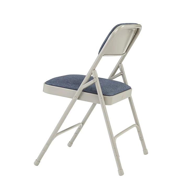 Made with comfort and elegance in mind, the 2200 Series fabric-upholstered folding chair is made with stain-resistant Scotchgarded fabric covering 1¼”-thick foam on our most popular frame. This features our unique full-size, double-contoured backrest, upholstered and firmly secured to the frame by six rivets. The institutional-grade frame is made from heavy-duty powder-coated 18-gauge round tubing with two U-shaped double-riveted cross-braces – one in front and one in the back – to securely support the double-hinged legs. Color-coordinated V-tip stability plugs provide added reinforcement at the frame’s junction and matching replaceable glides prevent floor damage. The 2200 Series meets MAS Certified Green and ANSI/BIFMA standards.