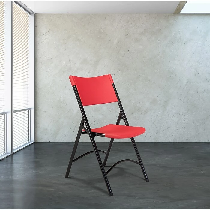 Made for true efficiency and stability, the 600 Series blow-molded, resin-plastic folding chairs feature a heavy-duty powder-coated 19-gauge tubular frame and a large contoured seat and backrest for your comfort. Two double-riveted U-braces – one in front and one in back – securely support the single-hinged legs. V-tip stability plugs provide added reinforcement at the frame’s junction and replaceable glides prevent floor damage. Lightweight for easy transport, they are stain-resistant and perfect for easy set-up and take-down, indoors or outdoors. Available in our All-American Colors. The 600 Series meets MAS Certified Green and ANSI/BIFMA standards.