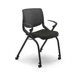 HON Ignition Mesh/Fabric Multi-Purpose Stacking Chair, 4-Leg, Fixed Arms, Black (HONIS107HIMCU10)