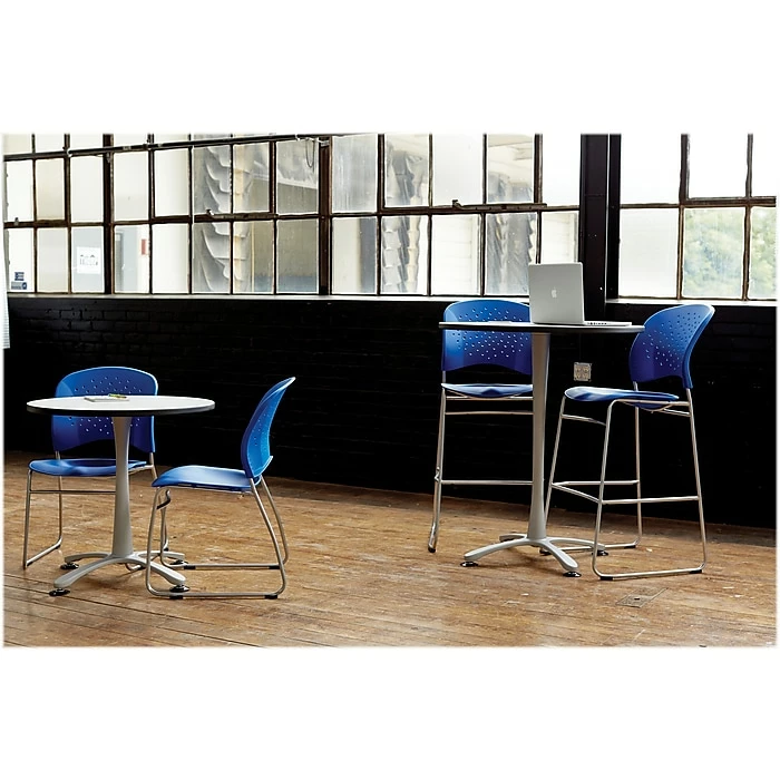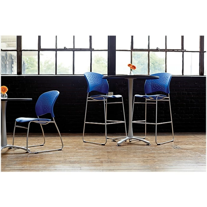 This Safco Reve bistro-height chair with a rounded back adds extra seating to any room. Its armless design allows for easy movement and versatility.